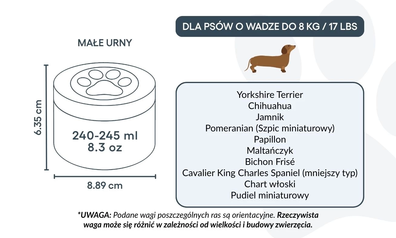 🤍 Kompaktowa i bezpieczna – idealna na prochy małych i średnich psów