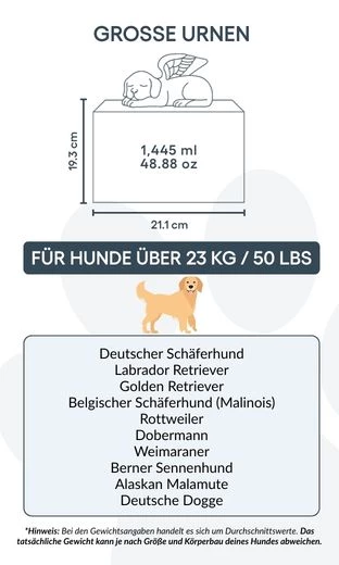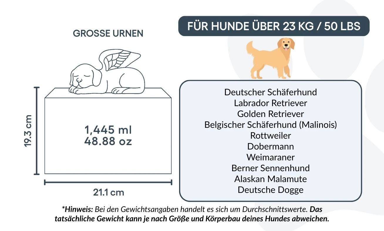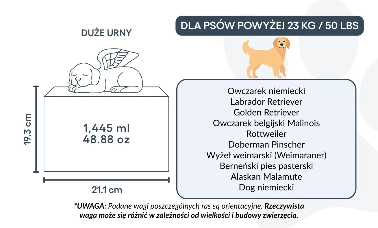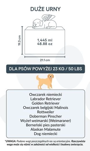 🤍 Zaprojektowana do przechowywania prochów psów o wadze ok. 40 kg lub więcej