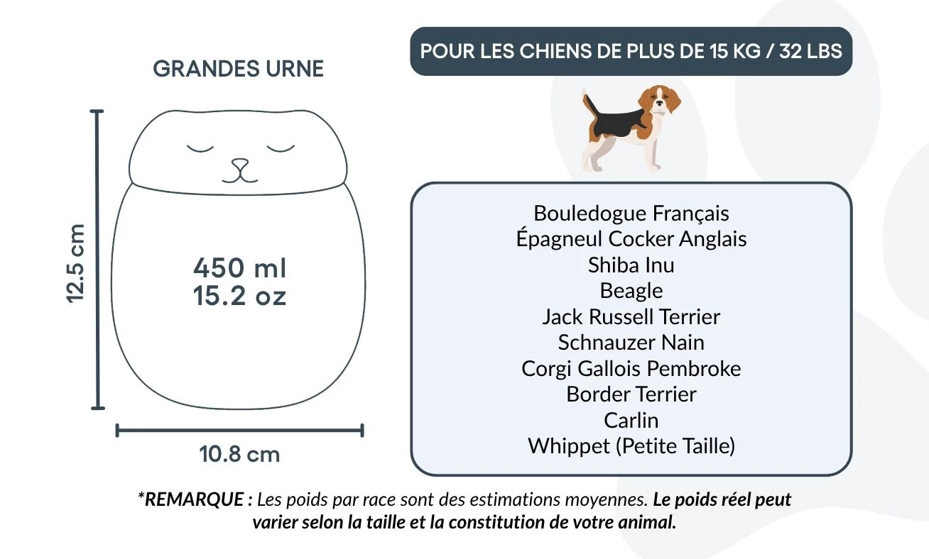 Wykonana z gładkiej, wysokiej jakości ceramiki, ta urna kremacyjna łączy elegancję z funkcjonalnością. Bezpieczne zamknięcie chroni prochy pupila, a minimalistyczne białe wykończenie wprowadza spokój do każdej domowej przestrzeni. Zaprojektowana jako wzruszająca urna pamiątkowa, pozwala uczcić ukochanego psa w sposób osobisty i pełen szacunku.