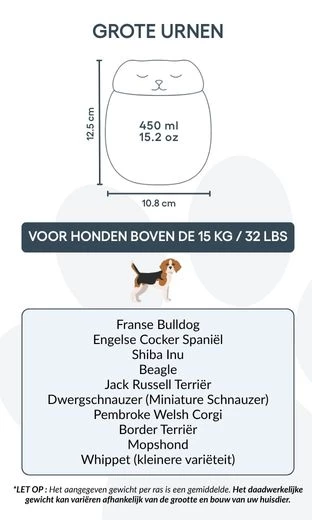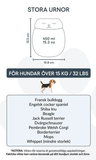 Dzięki pełnym opcjom personalizacji możesz wygrawerować imię psa, ważne daty oraz dodać zdjęcie — zamieniając tę urnę pamiątkową w znaczącą część procesu pożegnania i leczenia emocji.