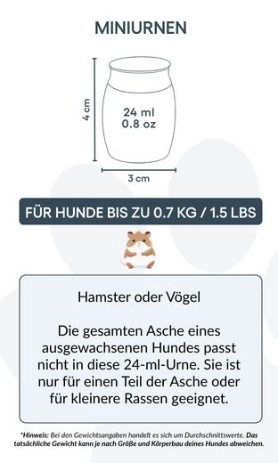 🤍 Odpowiednia dla chomików, małych ptaków lub jako urna częściowa dla większych psów