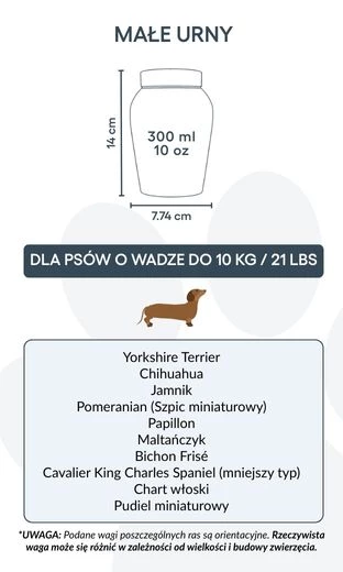 Niezależnie od tego, czy zostanie umieszczona na półce, komodzie czy w osobistym miejscu pamięci, ta urna ze zdjęciem przynosi ukojenie i pozwala zachować blisko wspomnienia. To pamiątkowa urna dla psa, która w pełni oddaje miłość i więź, jaką dzieliliście.