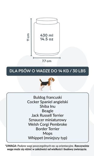 *Uwaga: Wagi ras są wartościami orientacyjnymi. Rzeczywista waga może się różnić w zależności od wielkości i budowy psa.